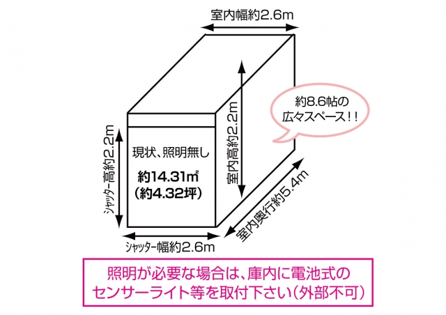 | 注意事項 | ・駐車場・家財・荷物等の保管場所としてご利用ください(危険物の持込不可)。作業所、事務所、店舗、宿泊等の利用はできません。 ・本物件に照明、コンセント、水栓はありません。照明が必要な場合、借主にて電池式センサーライト等を[庫内]に取付下さい。 ・盗難や火災等に備え、収納品に応じた火災保険、車両保険等への加入する必要があります。保険会社をご紹介します。 ・貸与する鍵は1本です。初期費用全額のお支払いを確認後に郵送にて送ります。 ・鍵交換を希望する場合、[株式会社ビルトへ鍵交換代金33,000円(税込)]を別途支払う必要があります。交換には入金後2~3週間を要する点にご注意下さい。 ・貸主が必要と判断する多雪の場合、除雪業者の手配を行いますが、不足箇所がある場合、借主にて除雪を行う必要があります。また、本物件の屋根雪下ろしが必要となった場合、借主の費用負担で行う必要があります。業者を貸主にて手配予定です。 ・車やバイクを駐車することも可能です。車庫証明発行を発行希望の場合は1通3,300円(税込)が必要です。 ・解約月の賃料は日割り計算を行わず、月割計算となりますので予めご了承下さい。 ・保証会社加入必須となります。 ご契約時に初回保証料(賃料1ヶ月分)、システム利用料(初期費用総額の5%)を合わせて請求させていただきます。 月額保証料(毎月の引き落とし金額の6%最低金額600円)を毎月のお支払にて請求させていただきます。 |